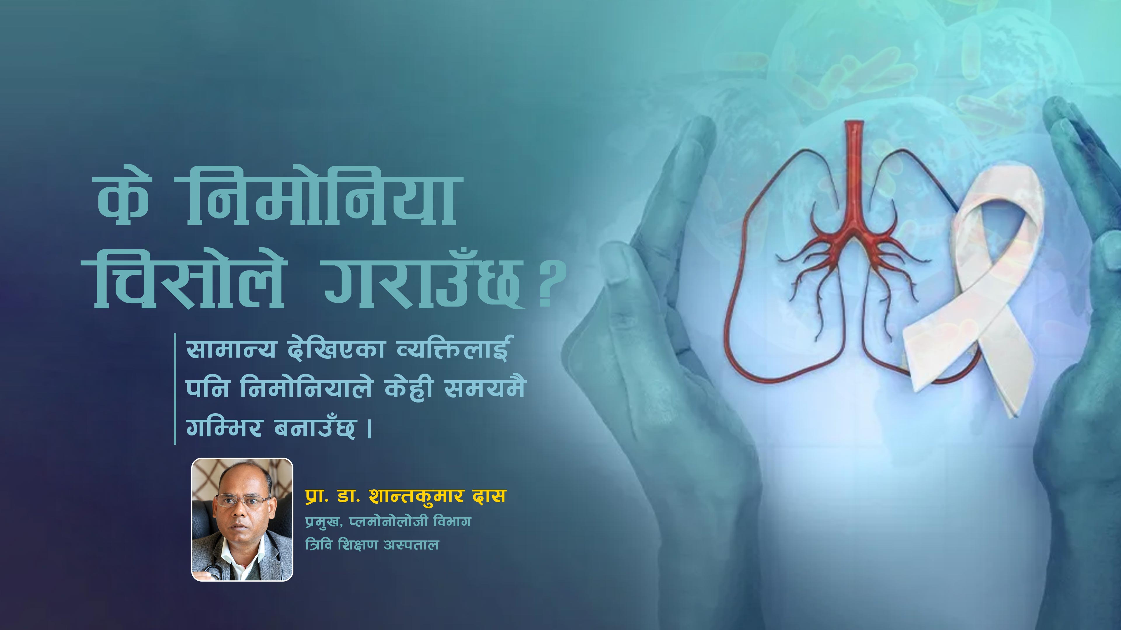 आज हामीले निमोनिया के हो ? जोखिम कसलाई, निमोनियाले किन सिकिस्तै बनाउँछ भन्ने लगायतका विषयमा त्रिवी शिक्षण अस्पतालका उपनिर्देशक एवं प्लमोनोलोजी विभाग प्रमुख डा.सन्तलाल दाससँग कुरा गरेका छौं ।