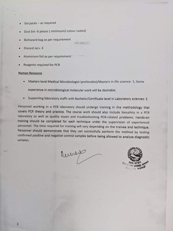 उहाँका अनुसार निजी प्रयोगशालाले कोरोना परीक्षण गर्नका लागि मन्त्रालयसंग छुट्टै अनुमति लिन पर्नेछ । उहाँले राप्ती स्वास्थ्य विज्ञान प्रतिष्ठानमा पनि आजदेखि पिसिआर प्रविधिबाट कोरोनाको परीक्षण सुरु भएकाले पिसिआरबाट कोरोनाको परीक्षणको संख्या १६ पुगेको जानकारी दिनुभयो ।
