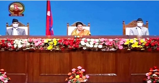 काठमाडौं । राष्ट्रपति विद्यादेवी भण्डारीले आर्थिक वर्ष २०७७÷७८ को नीति तथा कार्यक्रम सदनमा प्रस्तुत गर्नुभएको छ । राष्ट्रपति भण्डारीले दुवै सदनको संयुक्त बैठकको सम्बोधन गर्दै उहाँले कोरोना मुक्त बनाउने सरकारको लक्ष्य रहेको बताउनुभयो । कोरोना विरुद्धको लडाँइमा अग्रपक्तिमा खटिएका सबैको प्रशंसा गर्नुभयो ।