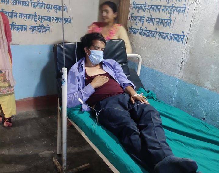 स्वास्थ्य संयोजक भण्डारीको छातिमा निलडाम परेको छ र स्वास्थ्यकर्मी भण्डारी बोल्न सक्ने स्थितिमा नभएको बताएका छन् । थप जाँच भइरहेकाले अवस्था अनुसार रिफर गर्ने नगर्ने बारे प्राथमिक स्वास्थ्य केन्द्रले पछि निर्णय गर्ने बताइएको छ ।