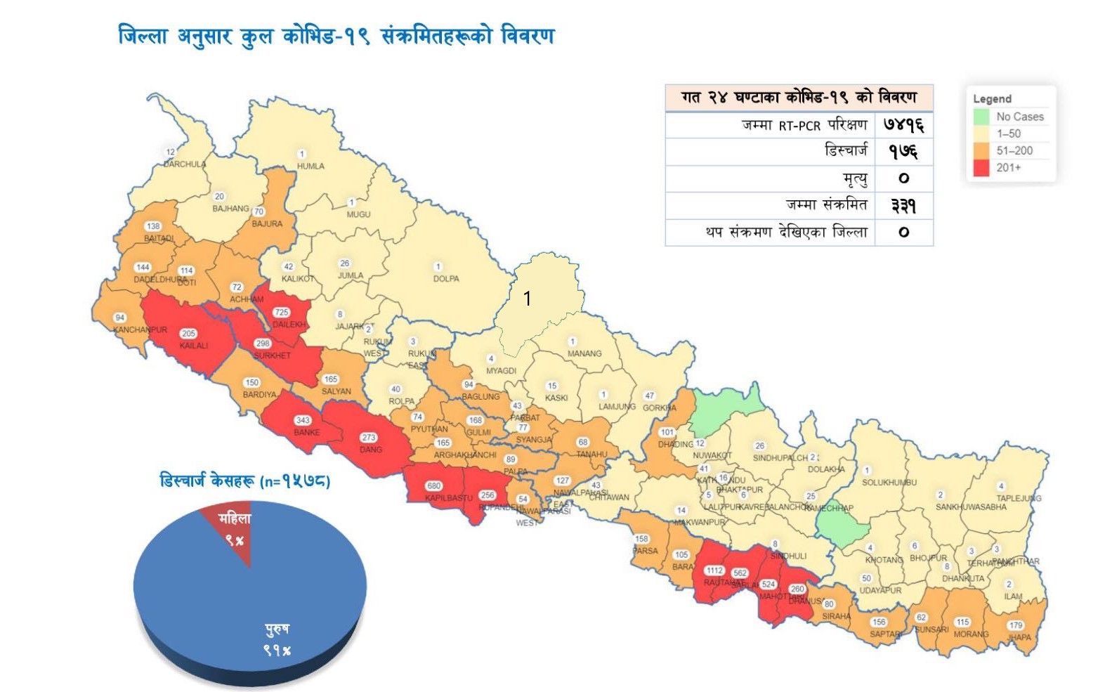 यसअघि स्वास्थ्य तथा जनसंख्या मन्त्रालयको नियमित प्रेस ब्रिफिङमा ३३१ जनालाई कोरोना पुष्टि भएको जानकारी दिइएको थियो। विभिन्न प्रयोगशालामा परीक्षणको क्रम चलिरहेकाले संक्रमितको संख्या बढ्ने देखिएको छ ।