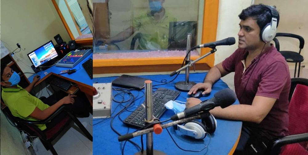कोरोना संक्रमण देखिए पनि निरन्तर काममा खटिइरहेका नारायणी एफएम वीरगन्जका रेडियोकर्मी । फोटो : गोविन्द देवकोटाको फेसबुकबाट