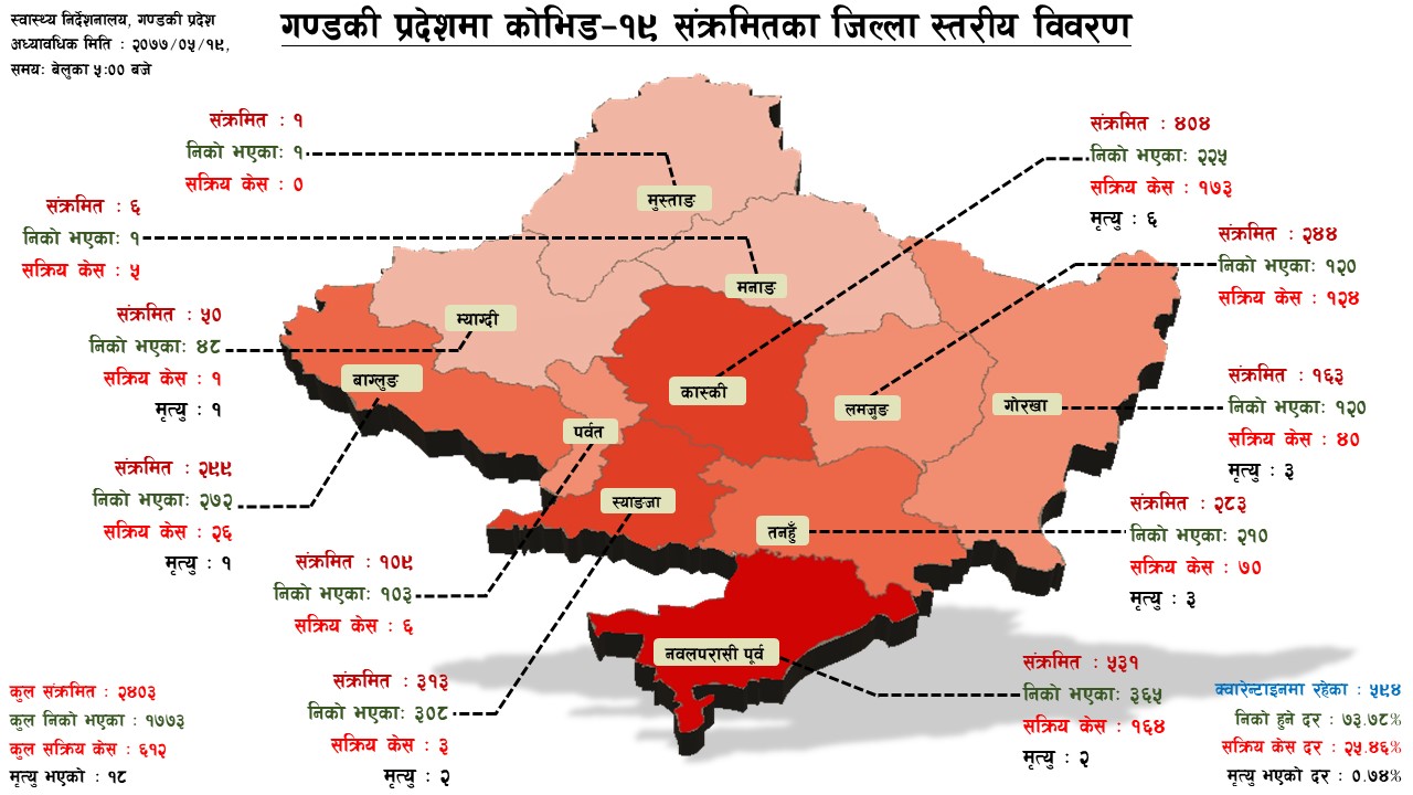 गण्डकी प्रदेशमा ६१२ सक्रिय संक्रमित, कुन जिल्लामा कति ?
