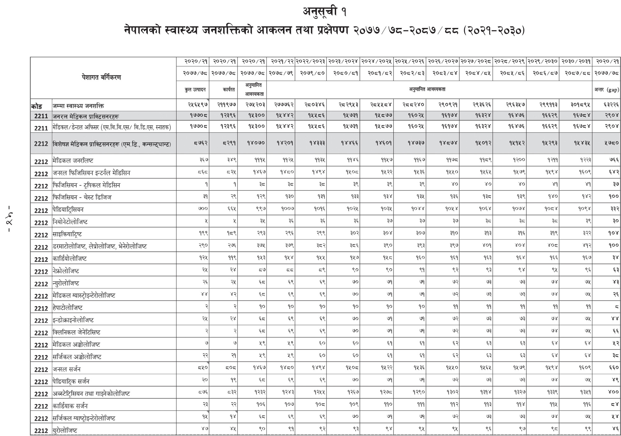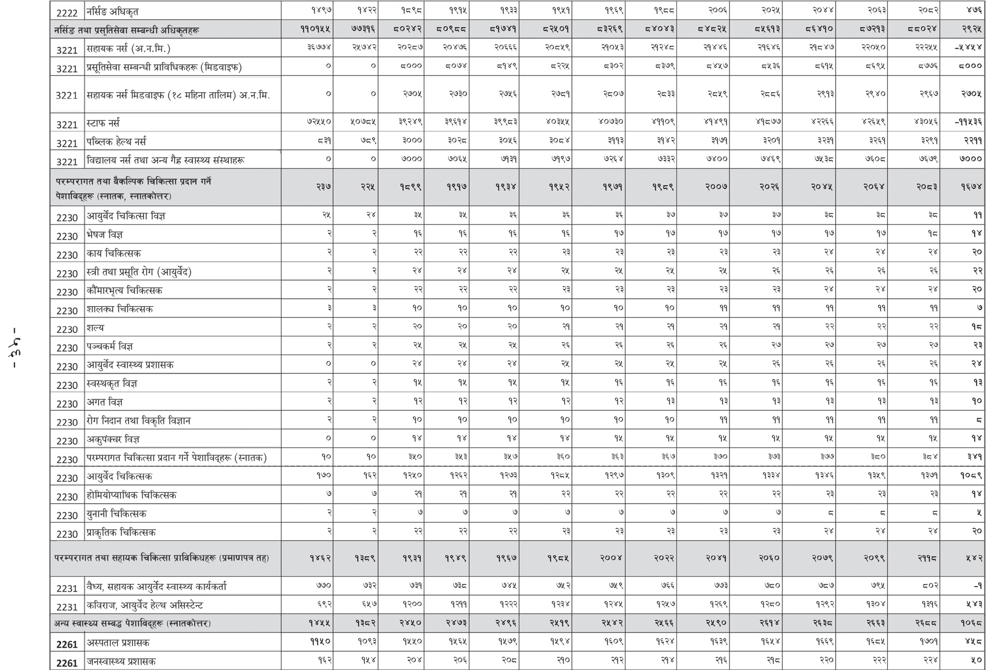 आयोगले २०८७ / ०८८ अर्थात सन् २०३० सम्ममा १२ विधाका गरी ३ लाख १ हजार ८९५ स्वास्थ्यका जनशक्ति आवश्यक पर्ने प्रक्षेपण गरेको छ।