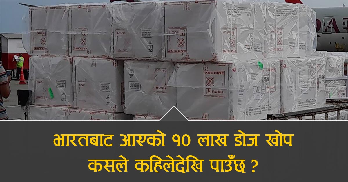 नेपालले खरिद गरेको २० लाख डोज खोपमध्ये १० लाख डोज खोप शनिबार ल्याइएको हो । १० लाख डोज यसअघि नै नेपालमा ल्याएर प्रयोग भइसकेको छ ।