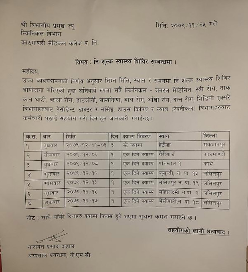 अस्पतालले दैनिकजसो विभिन्न ठाउँमा शिविर सञ्चालन गर्ने गरेको छ। ती शिविरमा आवासीय डाक्टरहरुलाई पठाउने गरेको छ । अस्पतालको प्रचारका लागि सञ्चालन गरिने यस्ता शिविरले आफूहरु हैरान भएको एक आवासीय चिकित्सक बताउनुहुन्छ ।