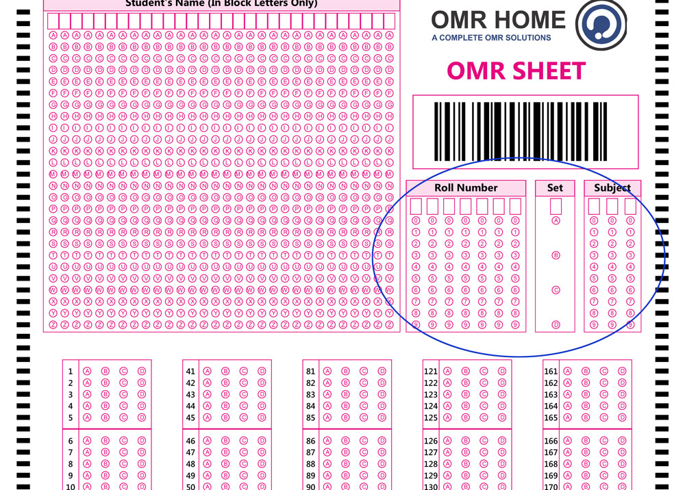 परीक्षामा दिइने उत्तर पुस्तिकाको माथि रोल नम्बर र प्रश्न सेट लेख्ने कोठा छुट्याइएको हुन्छ । रोल नम्बरको मुनि १ देखि ९ सम्मका अंक दिएर रोल नम्बर अनुसारका अंकमा गोलो लगाउनु पर्नेहुन्छ । प्रश्न सेट लेखिसकेपछि मुनि चार वटा प्रश्न सेटलाई जनाउने अंग्रेजी अक्षर ए, बी, सी, डी लेखिएको हुन्छ । माथि सेट लेखेपछि त्यही अनुसार तल गोलो पनि लगाउनु पर्नेहुन्छ ।