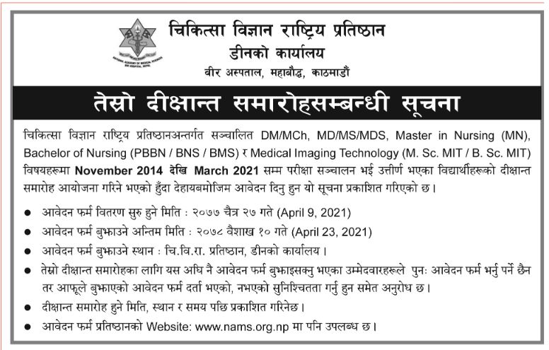 न्याम्सको दीक्षान्तको लागि आवेदन आव्हान
