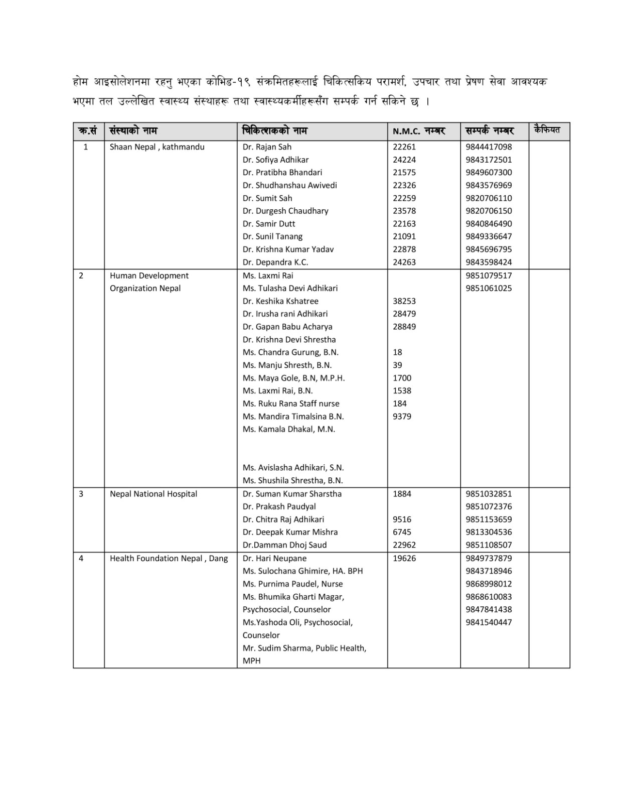 होम आइसोलेसनमा हुनुहुन्छ ? समस्या परे यी डाक्टरलाई फोन गर्नुहोस् !