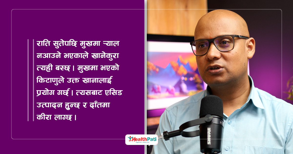 दाँत सम्बन्धि स्वास्थ्य समस्याका विषयमा दन्तरोग विशेषज्ञ डा. सञ्जयकुमार तिवारीसँग हेल्थपाटीका लागि जगन्नाथ ढकालले गर्नुभएको कुराकानी ।