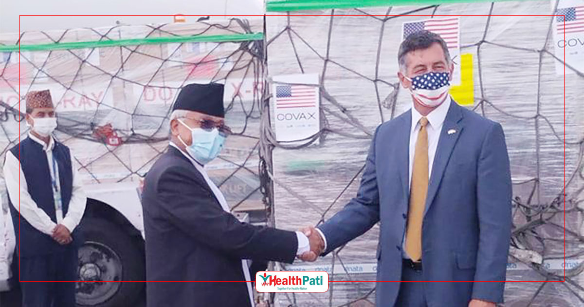 सो खोप स्वास्थ्यमन्त्री कृष्णगोपाल श्रेष्ठलाई नेपालका लागि अमेरिकी राजदूत र्यान्डी बेरीले हस्तान्तरण गर्नुभएको छ ।