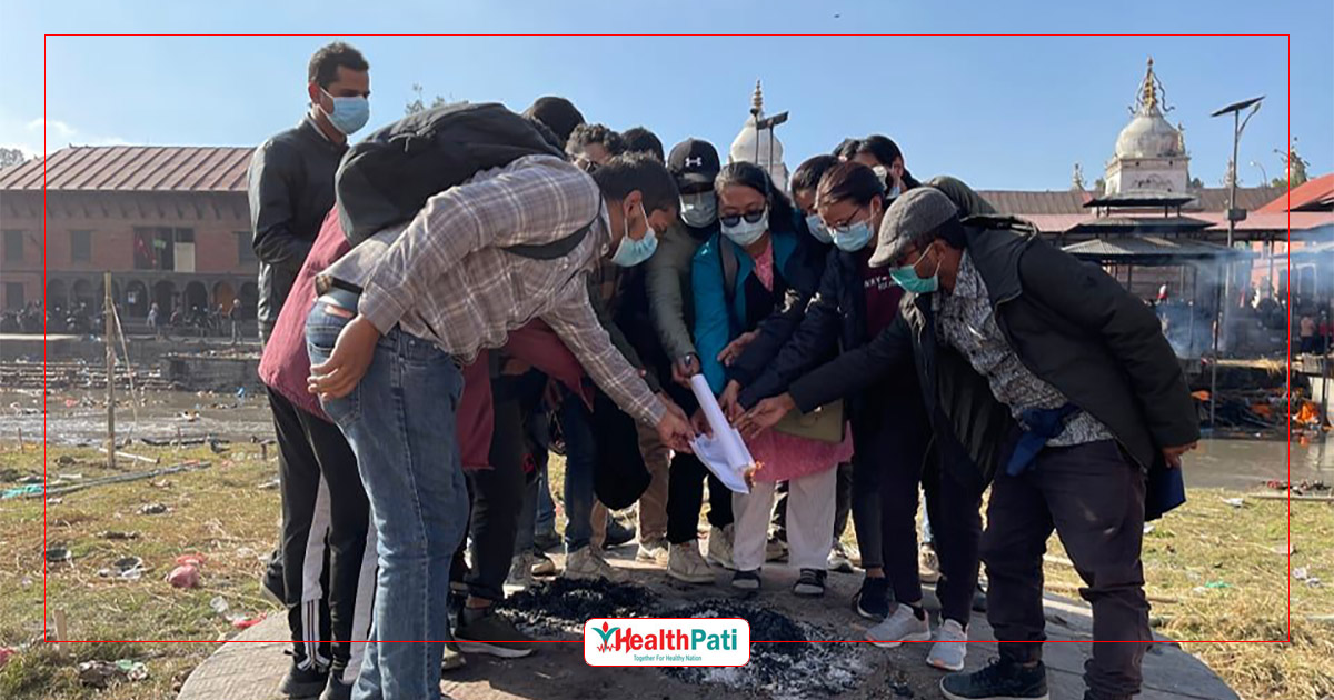 आफूहरूको भविष्य अन्यौलमा पार्न गरिएको निर्णय भन्दै पशुपति आर्यघाटमा सरकारको निर्णय जलाउँदै विद्यार्थीहरू ।