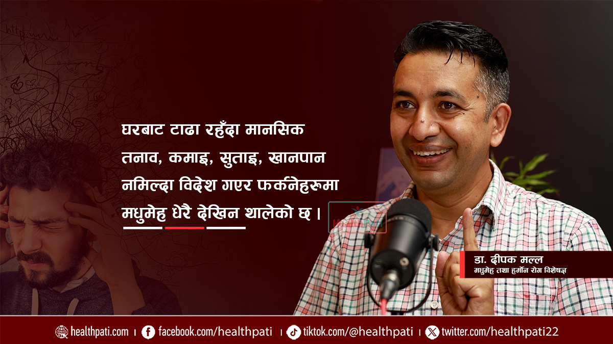 घरबाट टाढा रहँदा मानसिक तनाव, कमाइ, सुताइ, खानपान नमिल्दा उनीहरूमा मधुमेहको समस्या देखिएको उहाँले जानकारी दिनुभयो । उहाँका अनुसार अनिन्द्राका कारण शरीरमा हर्माेनहरू बढ्ने र त्यसले मधुमेहको समस्या देखाउने गर्छ ।