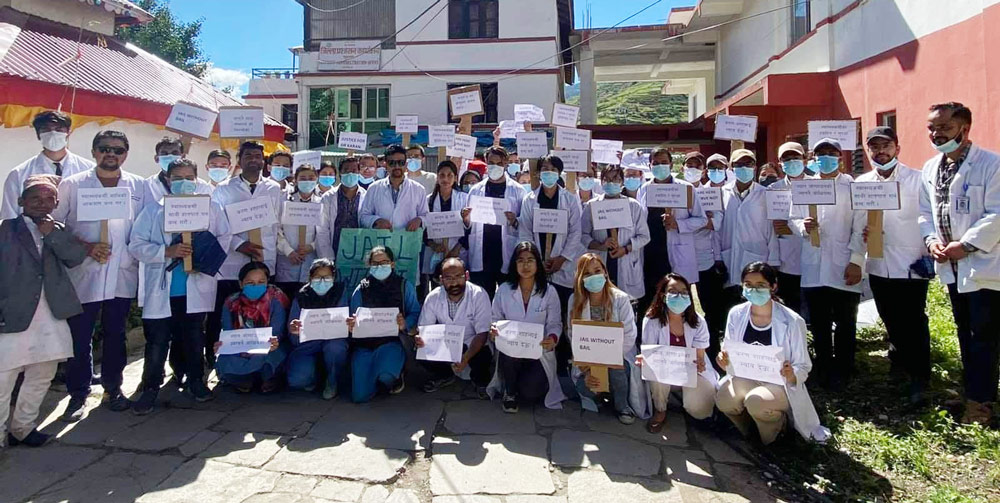 शान्ति सुरक्षाको माग गर्दै कर्णाली स्वास्थ्य विज्ञान प्रतिष्ठान जुम्लाका डाक्टरहरुले सामूहिक राजीनामाको घोषणा गरेका छन्।