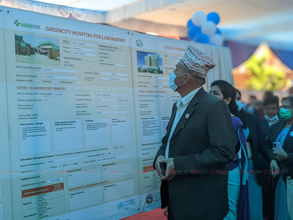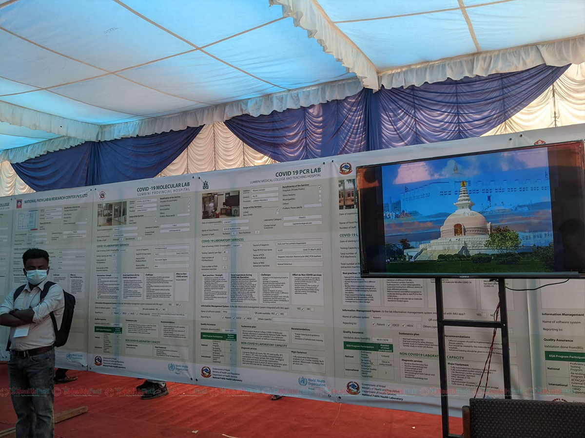 राष्ट्रिय जनस्वास्थ्य प्रयोगशालाको आयोजनामा भएको पोस्टर प्रर्दशनमा ८२ वटा प्रयोगशालाको सहभागिता रहेको छ। उद्घाटन कार्यक्रममा स्वास्थ्य तथा जनसंख्या राज्यमन्त्री भवानीप्रसाद खापुङले कोभिडले प्रयोगशालाको महत्व दर्शाएको र प्रयोगशालाको बिस्तार भएको चर्चा गर्नुभयो । कार्यक्रममा राष्ट्रिय प्रयोगशालाकी निर्देशक डा.रुणा झाले कोभिडको समयमा रातदिन नभनी खटिएका प्रयोगशालाकर्मीको प्रशंशा गर्नुभयो ।