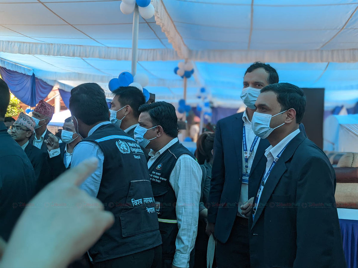 स्वास्थ्य तथा जनसंख्या राज्मन्त्री भवानीप्रसाद खापुङले पोस्टरको अवलोकन गर्नुहुँदै