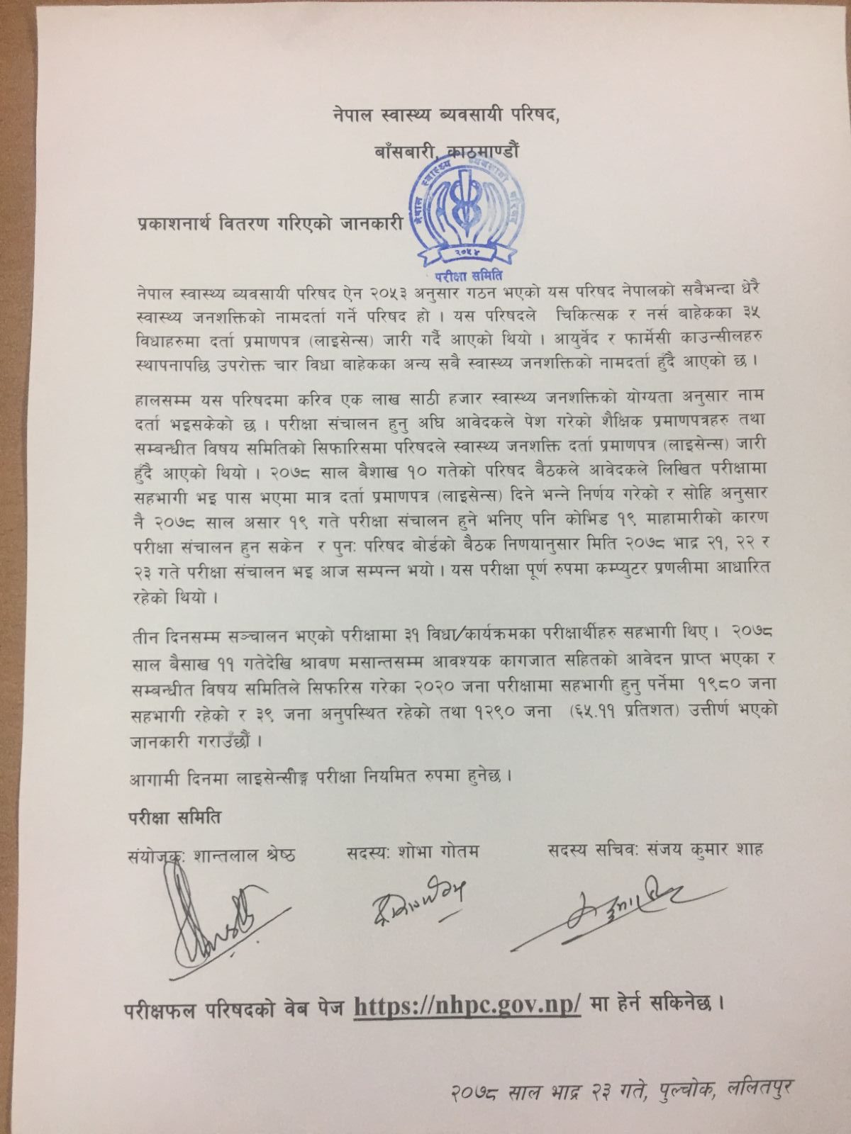 स्वास्थ्य व्यवसायी परिषद्काे लाइसेन्सिङ परीक्षामा १२२० जना पास