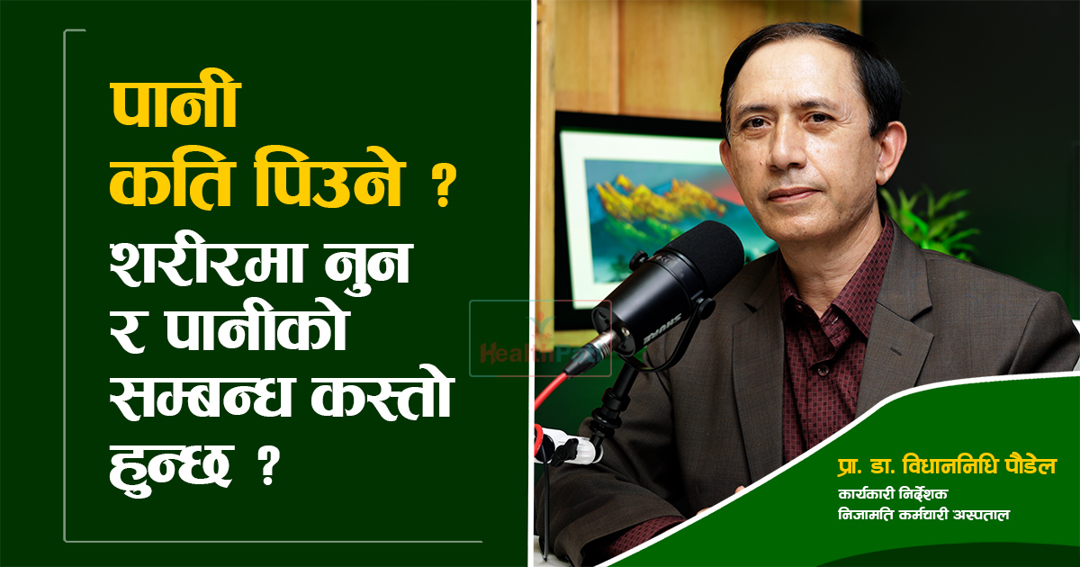निजामती कर्माचारी अस्पतालका निर्देशकसमेत रहनुभएका प्रा.डा.पौडेलले हेल्थपाटीसँगको कुराकानीमा धेरै पानी पिउदा स्वास्थ्यलाई फाइदा नहुने जानकारी दिनुभयो।