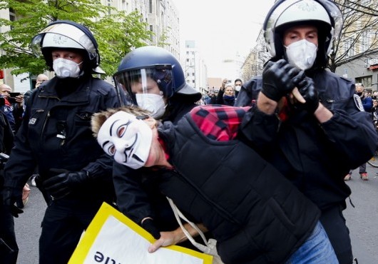 जर्मनीमा लकडाउनविरुद्ध भएकाे प्रदर्शनमा ४५ प्रहरी घाइते