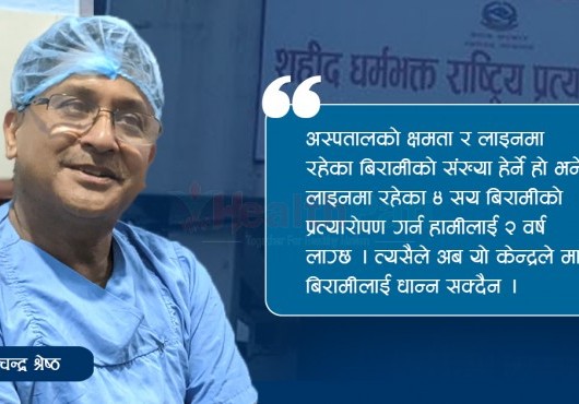 प्रत्यारोपण केन्द्रमा नाम टिपाएका सबैको पालो आउन २ वर्ष लाग्छ