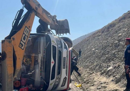 काठमाडौंबाट शैक्षिक भ्रमणमा गएका विद्यार्थी चढेको बस मुस्ताङमा दुर्घटना