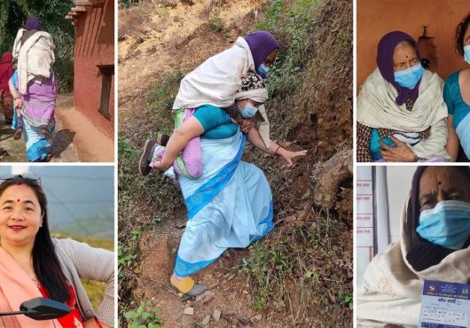 वृद्धालाई बोकेर खोप केन्द्र लैजाने स्वास्थ्यकर्मी लिला थापालाई सेवा सम्मान